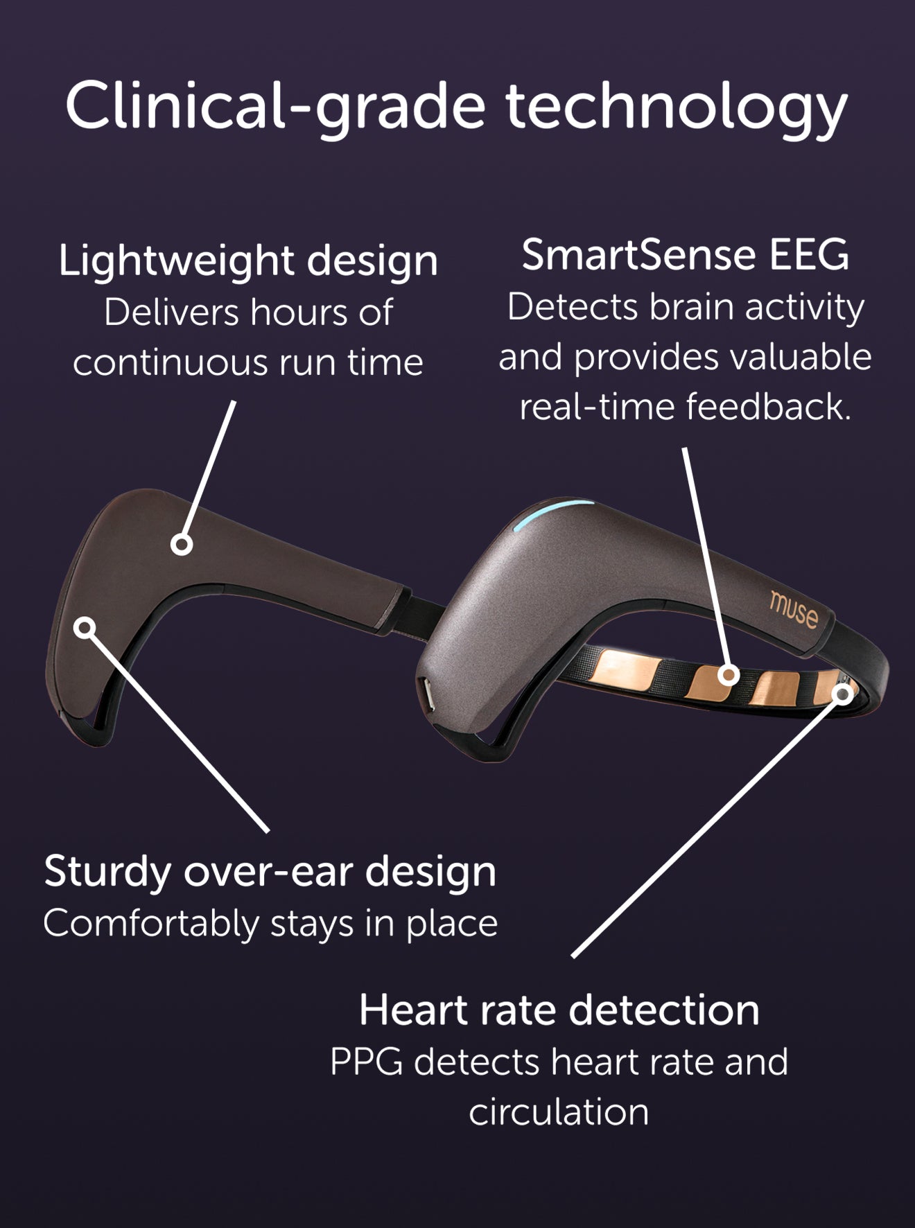 Seven EEG sensors detect and measure brain activity, providing biofeedback to optimize mental performance